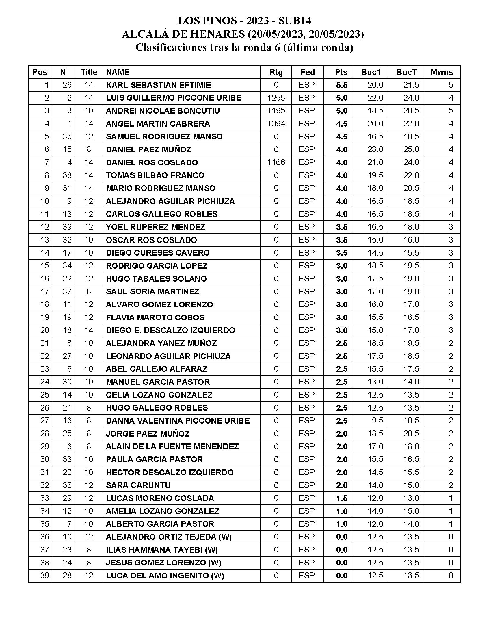 Cabrera se consagró como el vencedor, seguido por Daniel Ros Coslado en el segundo lugar y Tomás Bilbao Franco en el tercero. En la sub 12, Samuel Rodríguez Manso se alzó con el